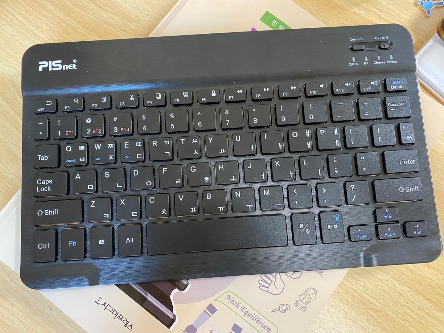 배터리: 이 제품의 가장 큰 장점은 바로 배터리입니다. 지인이 이 키보드를 충전할 때 산지 이년짼데 처음 충전하고 나서는 한 번도 다시 충전해본 적이 없다는 말을 듣고 구매했었습니다. 과장이겠거니 했는데 사실인듯합니다. 저도 이제 구입한 지 3개월이 넘어가는데 한 번도 충전을 더 해본 적이 없습니다. 요즘 아이패드 키보드를 많이 사용하지 않았다는 점을 감안하더라도 배터리 성능이 정말 최고입니다. 덕분에 배터리 방전의 걱정이 전혀 없이 키보드를 사용하고 있습니다. 예전에 샀던 키보드는 배터리가 너무 빨리 닳아서 충전을 너무 자주 하다 보니 배터리 충전 연결 잭이 고장 나서 버려버렸거든요. 심지어 그 키보드가 피스넷보다 가격도 세배 정도 더 비쌌습니다. 이런 면에서 피스넷 무선 키보드는 가성비면에서 감히 최고라고 말씀드릴 수 있습니다.