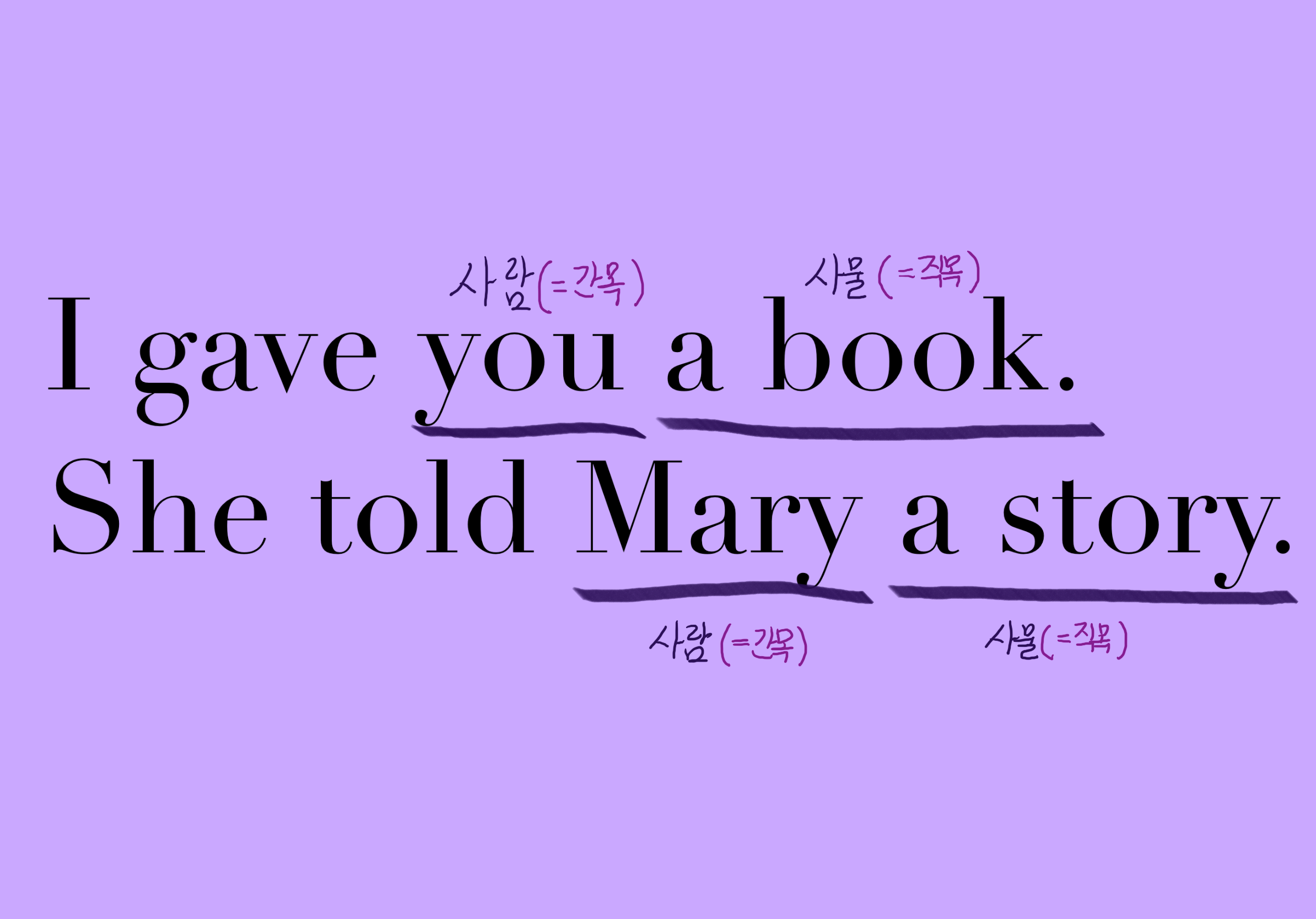 '간접목적어 = 사람, 직접목적어 = 사물'으로 간단히 생각하면 쉽습니다.
