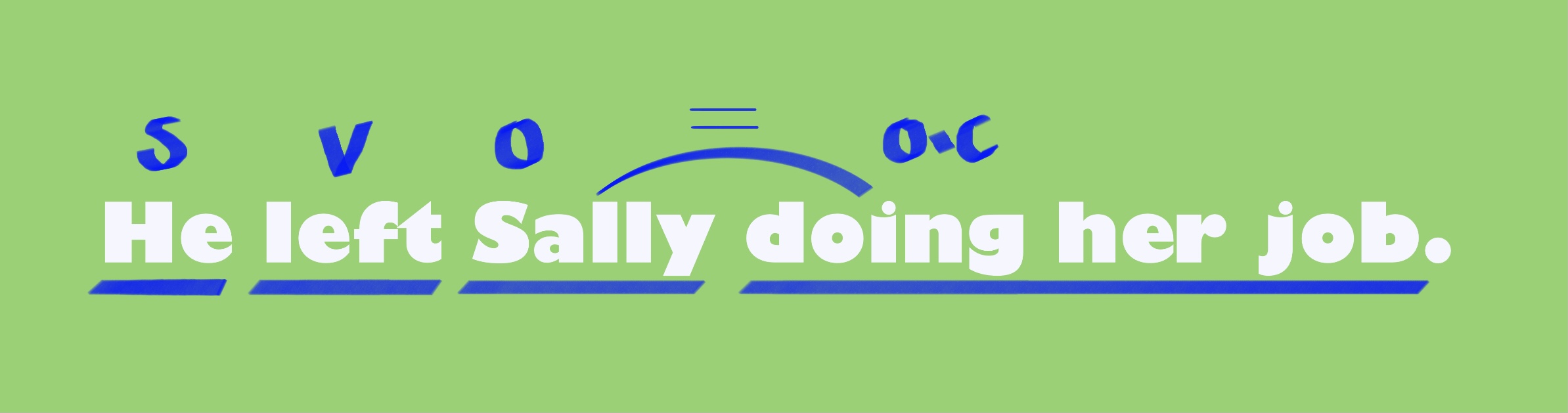 마찬가지로 목적격보어 자리에 -ing가 왔습니다. 'Sally=그녀의 일을 함'이라는 동격도 역시나 성립합니다.