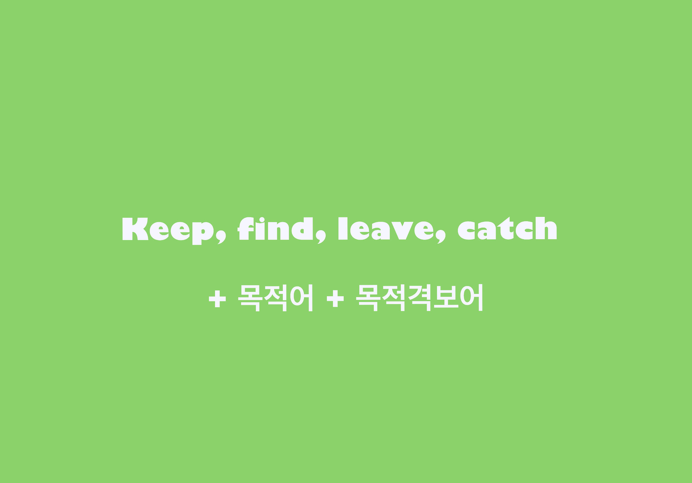 Keep, find, leave, catch의 목적격보어의 형태와 예문, 그리고 통사론적 설명까지 모두 살펴보았습니다. 그럼 채이 선생님은 다음 포스팅으로 돌아올게요. 모두들 다음에 만나요, 안녕!