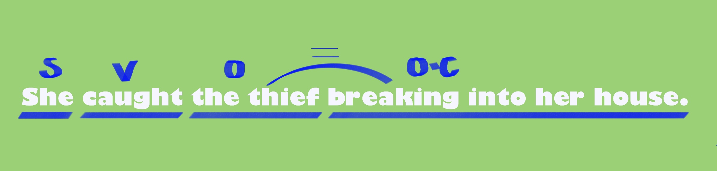 -> 그녀는(She) 도둑이(the theif) 그녀의 집으로 침입하는 것을(breaking into her house) 발견했다(caught).