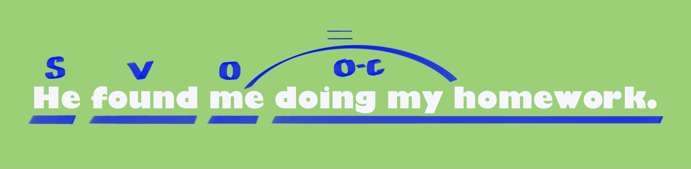 -> 그는(He) 내가(me) 나의 숙제를 했다는 것을(doing my homework) 알게 됐다(found).