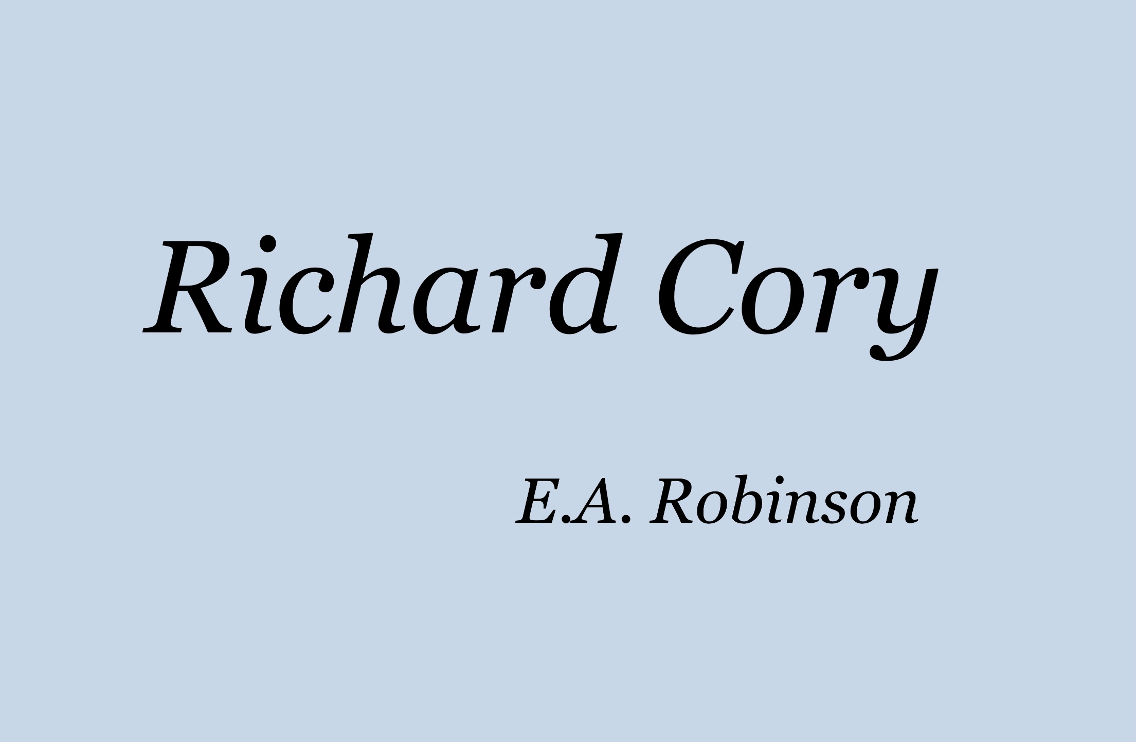 1920년대 세 번의 퓰리처상을 수상한 E.A 로빈슨(Edwin Arlington Robinson)은 "하디보다 예술적이고, 프로스트보다 점잖으며, 탁월한 소네트 시인"이라는 평을 받습니다. <리처드 코리>(Richard Cory)는 그의 작품 중 가장 유명한 시로 물질적 부와 조건이 갖는 가치에 강력한 의문, 소통의 단절을 조명합니다.