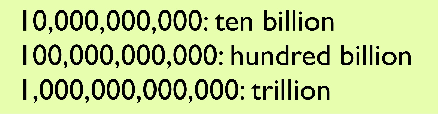 그런데, trillion부터의 단위는 앞에 붙는 접미사가 각각 숫자를 의미합니다.