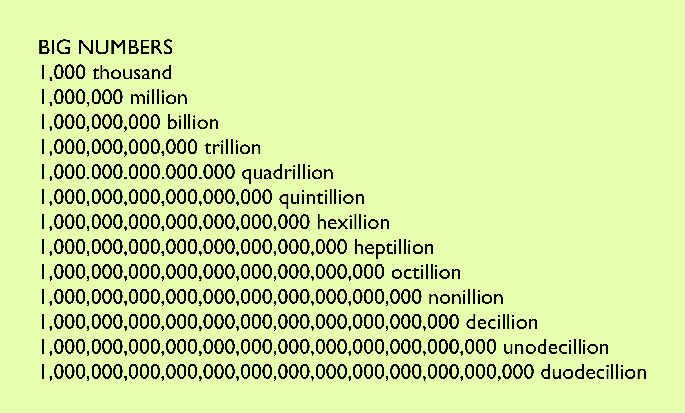 사실 일상생활에서 trillion 다음의 단위는 잘 쓰이지 않으나 trillion다음의 단위 두세게 정도는 알아 두는 것도 좋겠죠?
