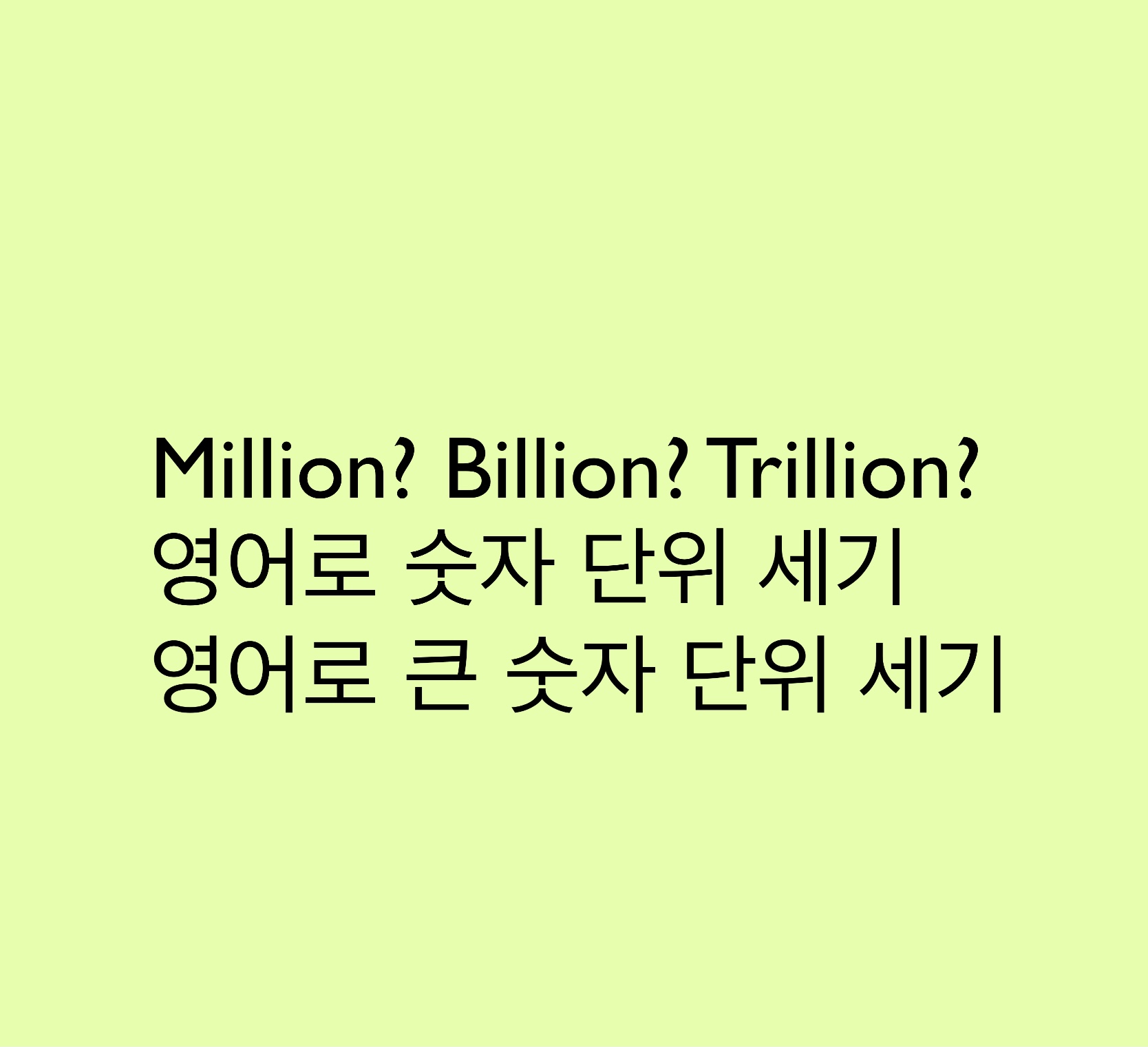 이번 포스팅에서는 다소 헷갈리는 영어 숫자 단위 읽기를 알아보았습니다. 우리나라와 체계가 다르니 조금 헷갈리죠?