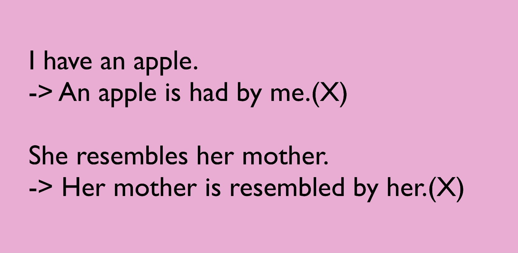 수동태가 무엇인지에 대해 어느 정도 감이 오셨다면, 이번 포스팅에서는 수동태가 불가능한 경우에 대해 알아보겠습니다.