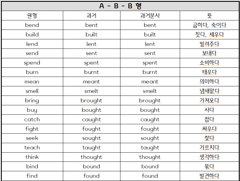 그럼 지금부터 불규칙 동사의 3단 변화 100개를 타입별로 정리해 공부해보도록 하겠습니다!
