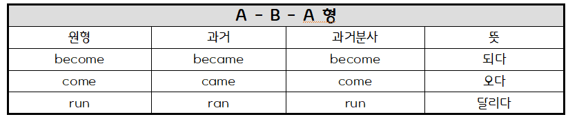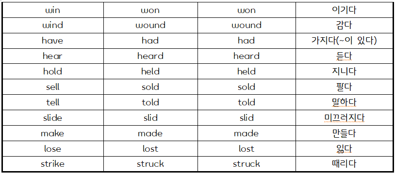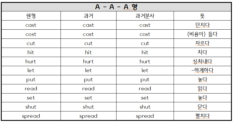 1. A-A-A형(원형, 과거, 과거분사형 동일)