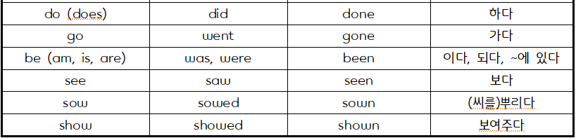이번 시간에는 동사 중에서도 불규칙 동사의 3단 변화에 대해 알아보려고 합니다.