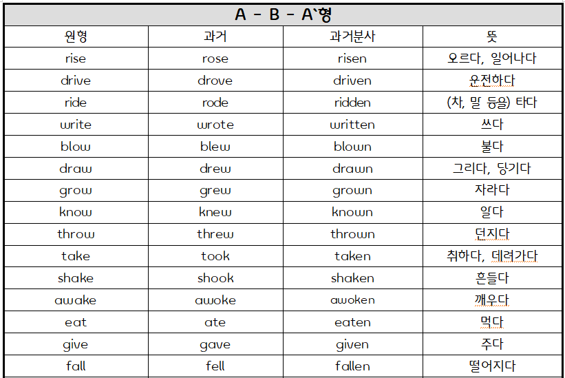 불규칙 동사의 3단 변화는 영어학습자들에겐 꽤나 까다로운 파트입니다. 오로지 암기에 의존해야 하고 양이 너무 많아 많은 학생들이 어렵다고 느끼는데요, 그렇다고 모르고 넘어갈 순 없는 아주 중요한 파트이기도 하답니다.