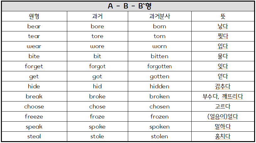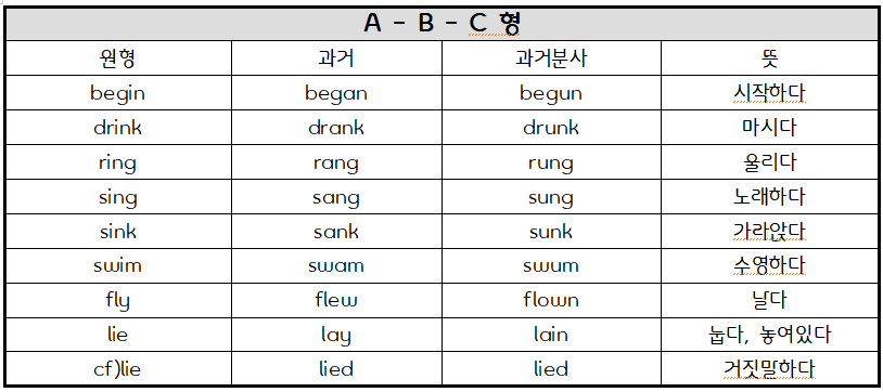 (특정 동사의 과거나 과거분사형이 헷갈려 들어오신 분이라면 [Ctrl+f]를 사용해서 해당 동사를 검색해 보세요!)