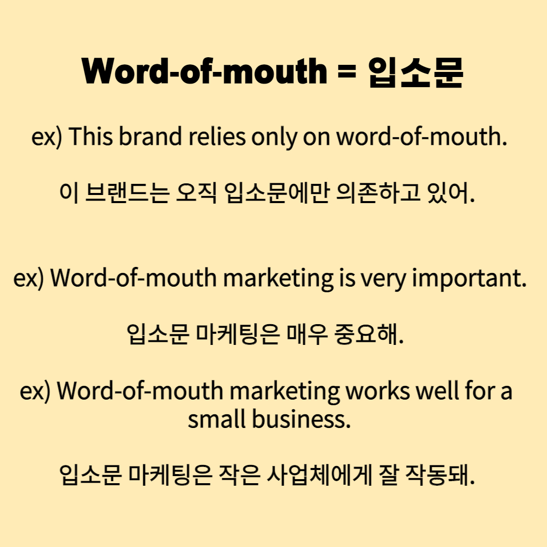 2. Word-of-mouth marketing is very important. = 입소문 마케팅은 무척 중요해.