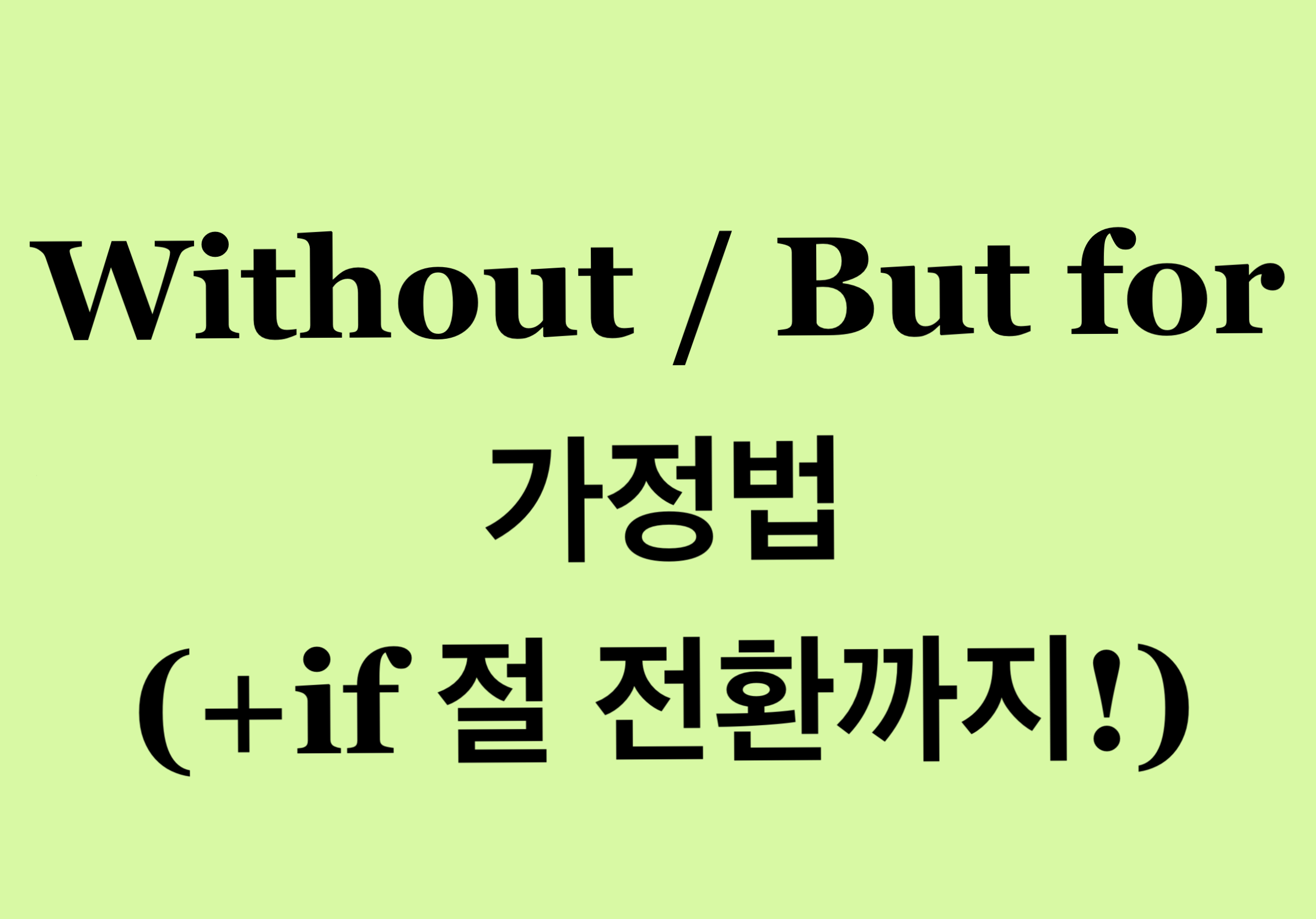 여기까지 without / but for 가정법의 기본적인 쓰임과 해석 방법을 알아보았습니다. 그렇다면 이번에는 without과 but for을 사용한 가정법을 어떻게 다시 if 절을 사용한 가정법으로 어떻게 바꿀 수 있을까요?