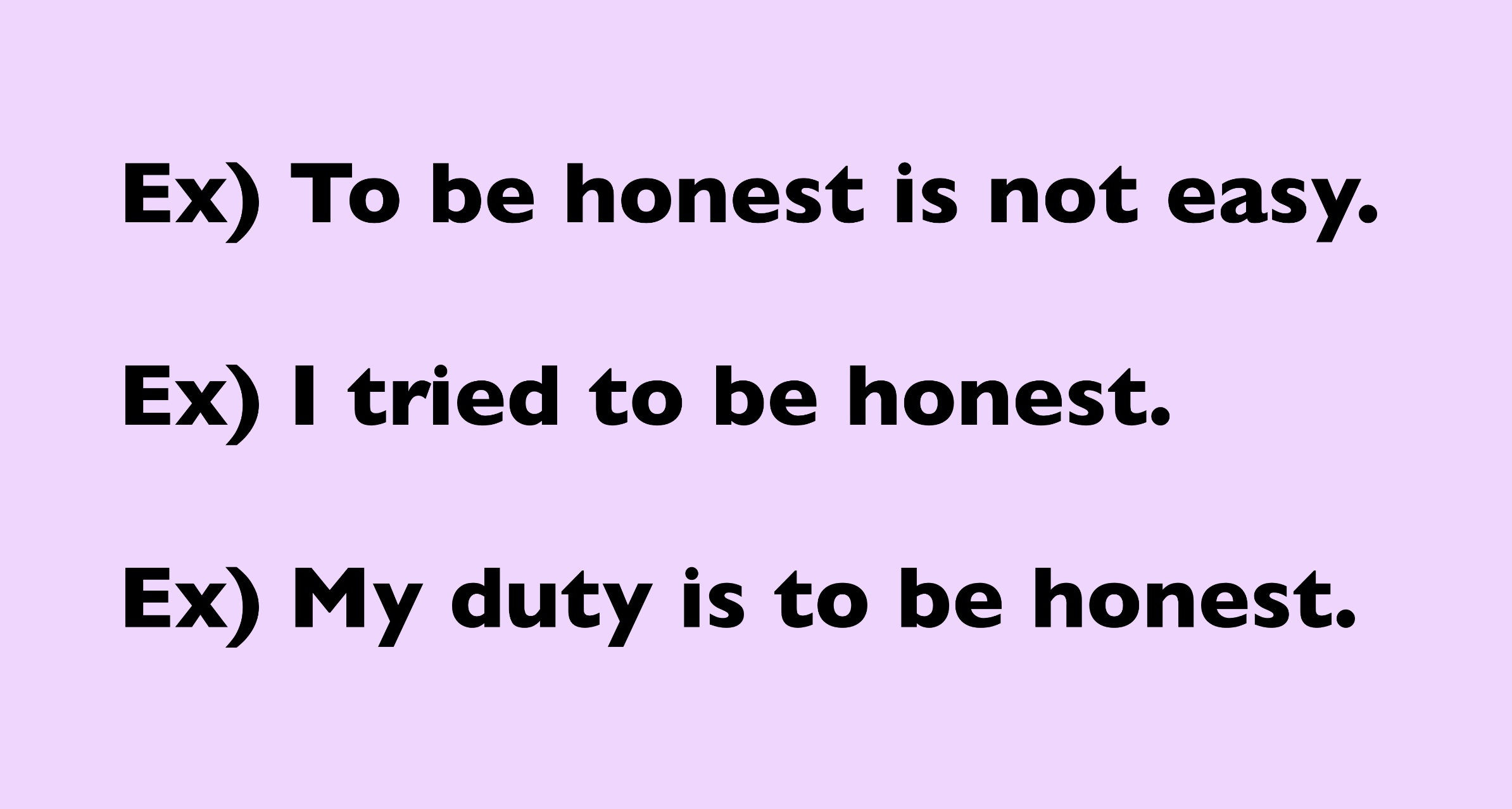 3) My duty is to be honest. = 나의 의무는 정직해지는 것이다.