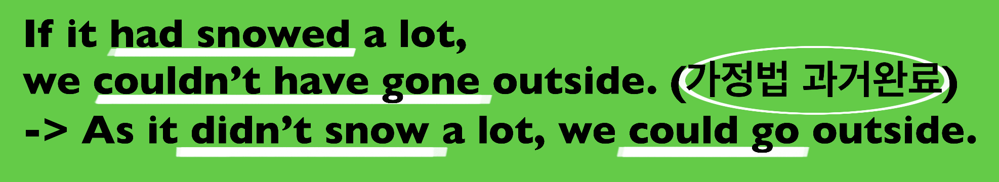 If it had snowed a lot(눈이 많이 왔었더라면), -> As it didn't snow a lot(눈이 많이 오지 않았기 때문에),