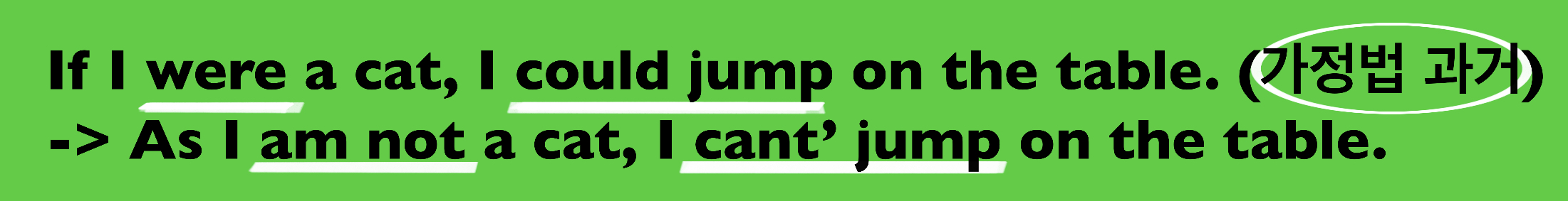 그러므로 '내가 고양이라면(If I were a cat), 나는 식탁 위로 뛸 수 있을 텐데(I could jump on the table)'을