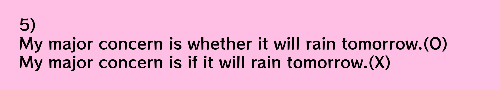 - My major concern is whether it will rain tomorrow.(O) = 나의 주된 관심사는 내일 비가 올 것인지 아닌지야.