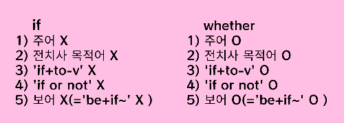 3) if+to-v -> 불가능 / whether+to-v -> 가능