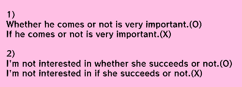- Whether he comes or not is very important.(O) = 그가 올지 안 올진 매우 중요해.