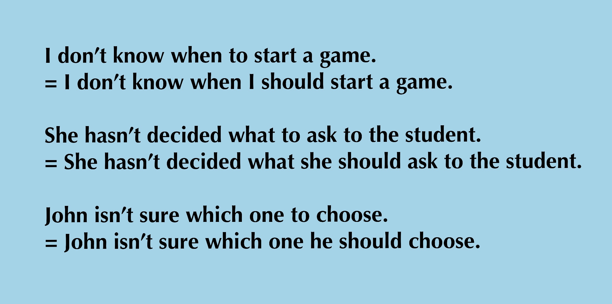 주절은 그대로 써주고, 의문사절을 'when I(주절의 주어와 동일) should start a game'으로 바꿔주면 됩니다.